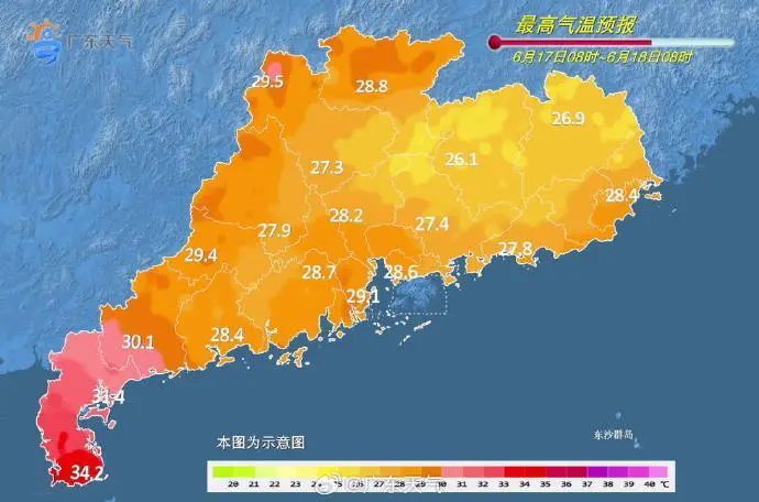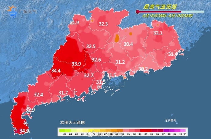 预计18日起,随着西南季风北推,副热带高压逐渐加强北抬,广东的降水将逐渐减弱,阳光增多,天气渐趋炎热。